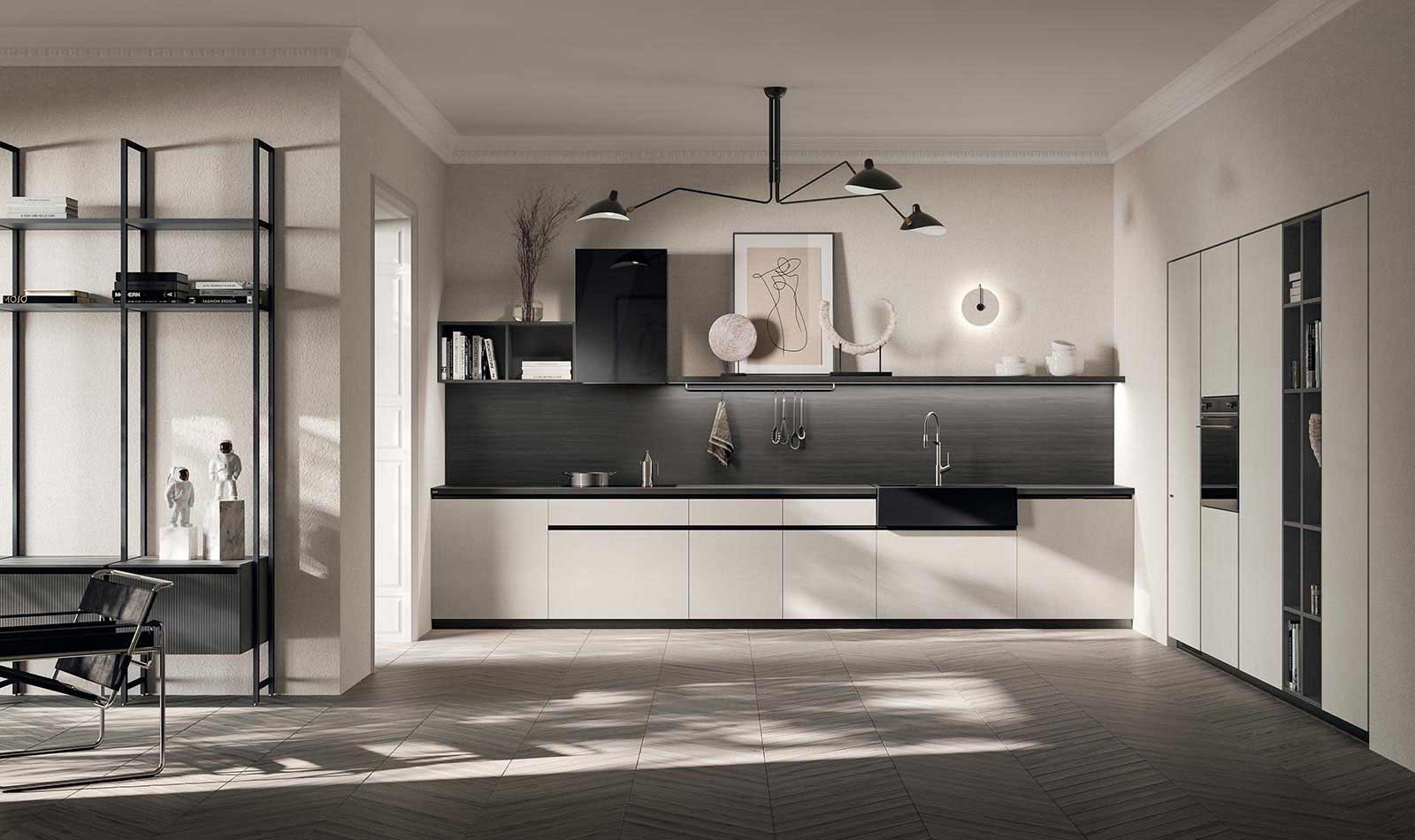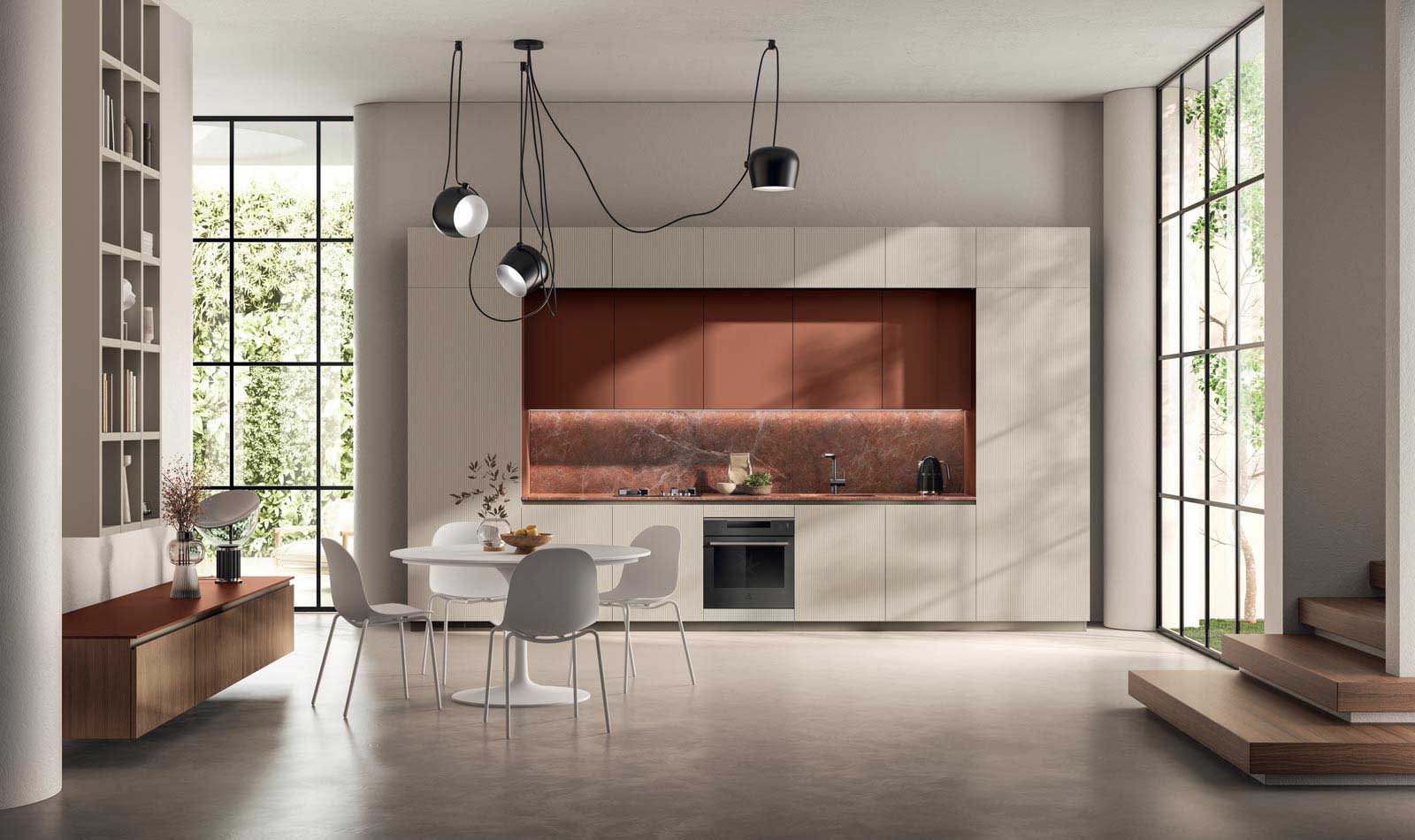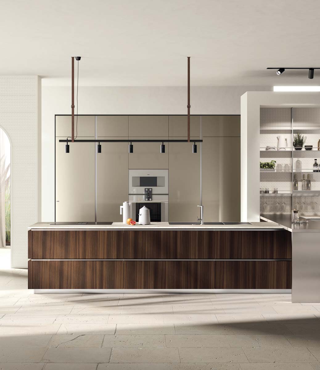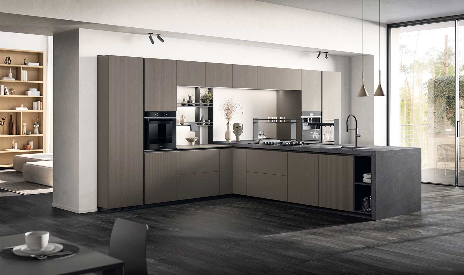 Il tratto distintivo del modello Mira è l’anta con profilo a “L”, progettata per chi ricerca un design pulito ed elegante, che unisce la cura dei dettagli alla praticità dell’utilizzo. È possibile abbinare questo profilo a due tipologie di gola Flat o Round, dettagli stilistici proposti per realizzare cucine e zone giorno che rispondono ai bisogni diversificati di ogni cliente. Combinazioni estetiche ricercate e scelte materiche di classe esaltano l’essenzialità di questo progetto che combina qualità, cura dei dettagli e inconfondibile gusto italiano.