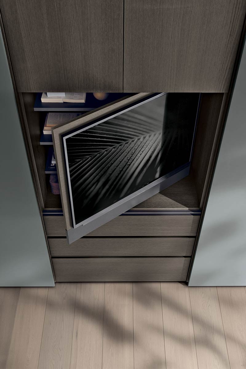 L’armadio con gola è caratterizzato da un’incisione sullo spessore dell’anta che facilita il movimento di apertura e chiusura. La gola è una scelta pratica che esalta la pulizia dei volumi.