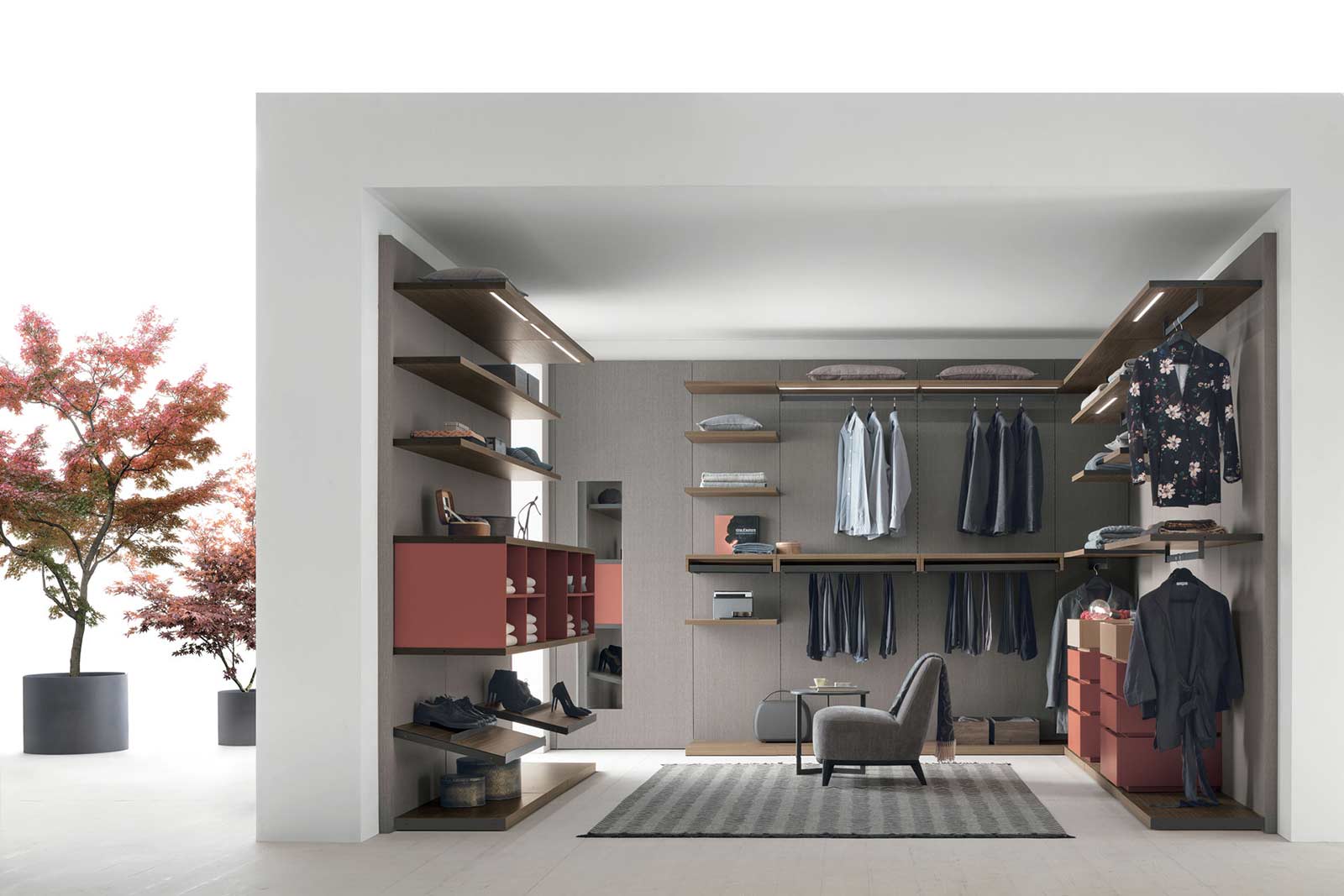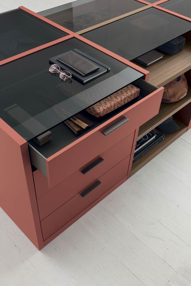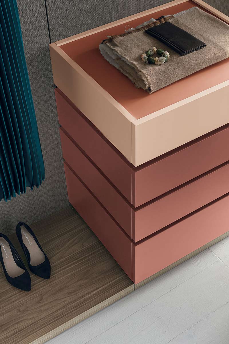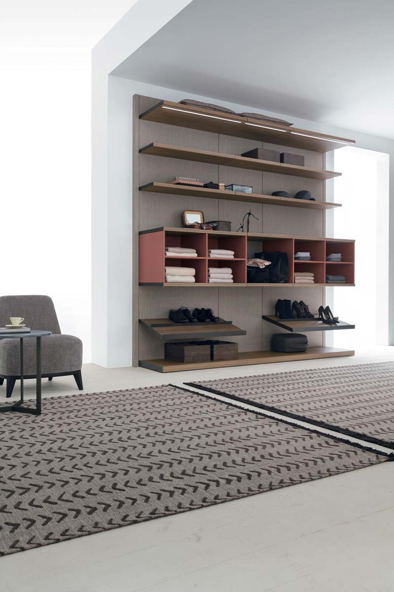 Pratico HOME 5 AMBIENTI 5 ZONA NOTTE 5 Cabine e Armadi 5 Pratico Pratico Tomasella Il sistema Pratico è formato da una boiserie, della quale è possibile scegliere la finiture, a cui si agganciano gli accessori necessari a rendere funzionale la propria cabina armadio.