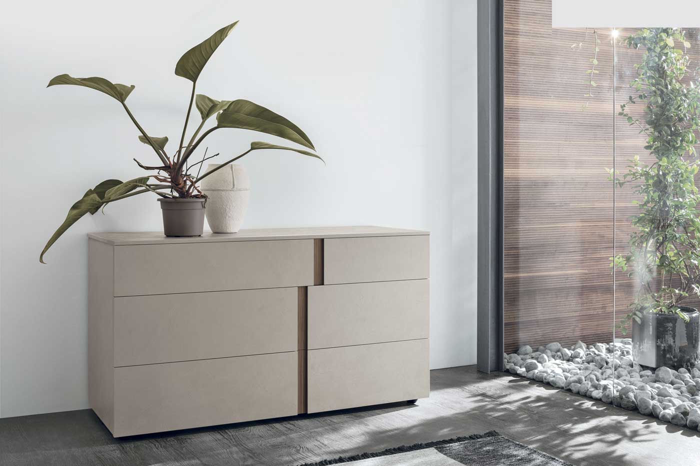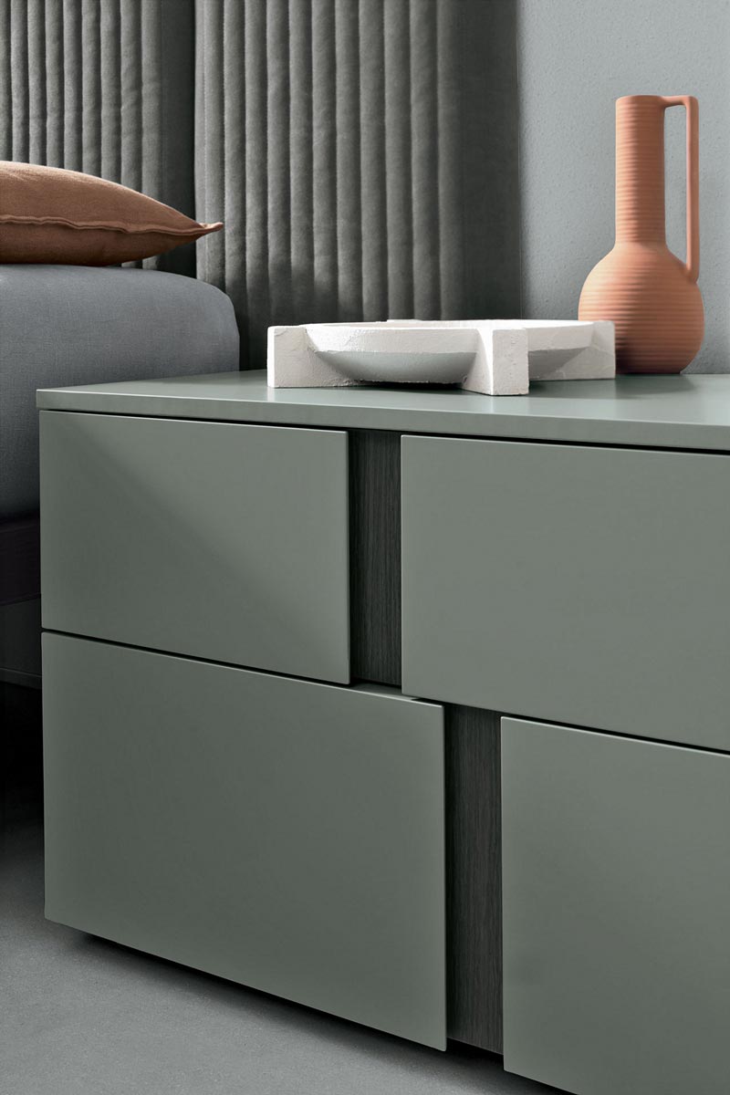 Il gruppo Athena presenta un inserto verticale, che viene utilizzato come maniglia e che disegna sui frontali delle fasce decorative personalizzabili con diverse finiture e diversi colori per creare dei complementi originali. L’inserto maniglia disallineato crea un gioco grafico e visivo accattivante.